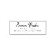 Adicione um toque de vintage à sua correspondência com este sofisticado carimbo de borracha para endereços de devolução. Seu nome é renderizado na encantadora caligrafia retrorreflectora, complementada pelo endereço em uma fonte elegante de serifa. Ideal para famílias, uso pessoal e marca comercial, este selo traz uma elegância eterno a cada letra e pacote, garantindo que seu correio sempre dá uma impressão na moda primeiro.