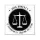 Carimbo com escalas de símbolo de justiça e endereço redondo.