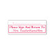 Este design de carimbo básico contém a mensagem "Please Sign And Return To" (Assinar e voltar para) e uma linha para uma assinatura ou iniciais a serem escritas acima. Também apresenta um nome de professor personalizado. Talvez possa ser usado por um professor, professor ou professor para pedir aos pais ou guardiães de um aluno que revejam e reconheçam a nota que um aluno recebeu num jornal, num exame, num ensaio, num ensaio ou noutro tipo de trabalho escolar.
