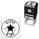 This cheerful, clean black and white self inking stamp is the perfect tool for educators and parents looking to offer fun, positive recognition and motivation. The engaging circular design features a bold, solid black star icon surrounded by sparkle graphics, emphasizing the central message. The text, SUPER STAR, is displayed above and below the star using a slightly distressed, chunky font that appeals to younger students. This high quality, self inking stamp produces a consistently crisp impression, making it easy for teachers to quickly mark papers, assignments and charts. It is frequently bought for use in elementary school classrooms, by tutors and by parents at home to acknowledge excellent effort, great behavior, or outstanding achievement. For a cohesive grading and reward system, this item pairs well with our assignment review checklist stamp.