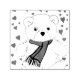 Um adorável desenho de um ursinho branco num cachecol vermelho cercado por corações vermelhos brilhantes.