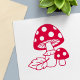 Um desenho animado bonito de cogumelos com prego vermelho de toadstool e uma folha seca.