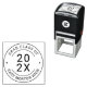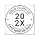 Um design moderno de carimbo de borracha personalizado que apresenta o ano de formatura atual enquadrado por "Turma de Graduação de" e o nome da escola. Personalize com o ano de formatura da turma, nome da escola ou nome do aluno. Pontos clássicos acentuam a moldura redonda.