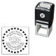 Este selo redondo apresenta um círculo decorativo de corações moldando todo o design. O nome é exibido em uma curva suave no topo, seguida do número de telefone diretamente abaixo dele. No centro, um gráfico das máscaras duplas do teatro acrescenta um talento criativo e dramático. O endereço é elegantemente curvo ao redor do fundo em duas linhas separadas, completando o design circular.
