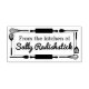Um belo selo de borracha de "da cozinha de", para o toque final em seus pacotes caseiros de comidas, doces e doces saborosos. Uma borda de cozinha, cozinhar ou utensílios cozinheiros - espátula, pino rolante e uísque - e seu dentro de texto personalizado.