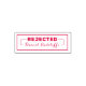 Faça sua marca com este carimbo vermelho vermelho vermelho "REJEITADO" com sua assinatura personalizada. Ideal para empresas, escritórios ou organizações pessoais, este carimbo duradouro proporciona com facilidade impressões claras e profissionais. Adicione autoridade e personalização a todas as rejeições com uma única imprensa rápida.