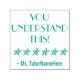 Este design de carimbo inspiracional mostra a mensagem "VOCÊ ENTENDE ISTO!" e um nome de educador personalizado. Ele também apresenta uma forma decorativa de estrela. Pode ser usado por um professor ou educador ao formando o trabalho estudantil, para reconhecer que um aluno fez um trabalho excepcional.