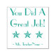 Este design de carimbo motivador mostra a mensagem inspiradora "Você Fez Um Trabalho de Excelente!" e um nome de professor personalizado. Ele também apresenta uma forma decorativa de estrela. Ele poderia ser usado por um professor, educador, instrutor ou orientador ao marcar tarefas, para indicar que o aluno fez bem.