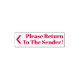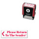 Este design de carimbo contém a mensagem "Please Return To The Sender!" (Retorne ao remetente!), juntamente com um símbolo de seta. Pode ser utilizado para indicar que o correio postal recebido foi entregue no endereço errado e deve ser devolvido ao remetente.