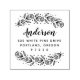 Carimbo elegante, de retorno floral, com bordas superiores e inferiores de flores e folhas desenhadas à mão. Personalize o carimbo personalizado adicionando seu sobrenome, endereço e CEP. Perfeito para usar para casamentos, chás de fraldas, feriados e muito mais.