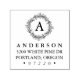 Elegante, carimbo de endereço de ida e volta de férias com seu monograma inicial de solteiro cercado por uma coroa de folhagem e bagas de inverno. Personalize o carimbo de feriado personalizado adicionando seu sobrenome, endereço e código postal. Perfeito para usar nos envelopes de férias, cartões de saudação e convites.
