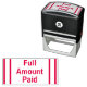 Este design de carimbo simples apresenta a mensagem "Quantia de Cheio Paga". Talvez possa ser usado para indicar que uma fatura ou fatura foi paga em cheio.