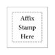 As palavras "Afixar Carimbo Aqui" num quadrado com linhas feitas de traços. Isto marca o lugar onde os selos postais vão.
