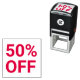 Esse selo de autoimpressão de 50% de venda é um complemento útil para qualquer loja. A porcentagem de desconto é editável.