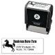 Carimbo de borracha personalizado de autoindução com nome de script, endereço de retorno e silhueta de cavalo, no lado esquerdo. Excelente para uso pessoal e comercial.