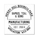 Carimbo da empresa de fabricação. Fabricante Carimbo de Borracha. Nome da Empresa, Tipo de Negócios, mais Duas Linhas de Endereço em um efeito circular. Um carimbo de empresa para todos os tipos de artigos de papelaria, envelopes, embalagens, etc. Coloque seu endereço de retorno de forma fácil e elegante.