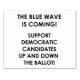 "A ONDA AZUL ESTÁ CHEGANDO. SUPORTE AOS CANDIDATOS DEMOCRÁTICOS PARA CIMA E PARA BAIXO DO BALLOT!", por Monkey Business Graphic Design, 2024.