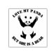 Panda branca e preta, de pé, sobre as patas traseiras, levantada sobre a cabeça. Com um texto que pode ser alterado que diz: "Ame o meu Panda, mas ela é um Urso"
