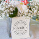 Anéis de casamento modernos com monograma inicial, sua data, nome e anéis de casamento em carimbo de borracha.