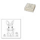 Um selo de borracha com uma ilustração fofa de coelho na arte de linha para atividades manuais com crianças e obras de artesanato! O coelho está sentado sobre suas pernas traseiras com flores de margarida em ambos os lados. Este carimbo também pode ser utilizado em ocasiões como primavera, Páscoa ou chá de fraldas.