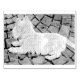 Sazonal Fall Autumn West Highland White Terrier deitado em um pátio de pedra com folhas caídas. Cachorro ocidental a espreitar por um arbusto florescente. Isobel. Copyright © 2025 Angi Laframboise. Todos os direitos reservados. Dons de cães de arte para amantes de cães.