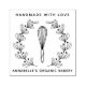 Carimbo de borracha da padaria moderna. Design apresenta uísque, coroa floral, seu nome comercial e roteiro "feito à mão com amor". Carimbo perfeito, na moda para o padeiro, padaria, padeiro, cozinheiro, cozinheiro, etc. Personalize ainda mais o seu nome ou nome comercial.