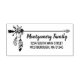 Se você ama a arte inspirada Boho e Bohemian, você vai adorar esse nome de família devolvendo o selo de borracha. Ele apresenta um desenho artístico de uma seta decorada com rosas e penas como um quadro para seu nome e endereço para você personalizar. ©Sisam Coffey.