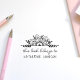 Este selo de borracha da biblioteca floral boho apresenta uma coroa botânica exuberante com o girassol. Dentro é o seu nome na escrita manual casual e no cabeçalho "este livro pertence a" num simples script manuscrito. Crie a sua própria libris ex florida clicando no botão "Personalizar" e mudando o nome do modelo para o seu.