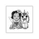 Bonito Unicórnio com Borboleta no selo de borracha Nose Esta menina pode representar uma hispânica ou uma garota afro-americana.