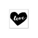 Adicione um encanto estampado aos seus envelopes, favores e muito mais com o nosso doce e romântico carimbo com uma ilustração da silhueta cardíaca com "amor" inscrito na dentro da escrita moderna.