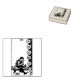 Um selo de borracha do clássico Rider Waite Smith Minor Arcana Tarot card, "Oito moedas" ou "8 de Pentáculos". Representa a diligência, o conhecimento crescente, o duro de trabalho e a atenção especial aos detalhes.
