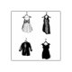O selo de borracha contém uma linha de ilustrações originais de vestidos bonito em cabides.