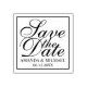 Casamento Elegante Salve a Data Carimbo de Borracha com a frase "Salvar a Data" no estilo de letra elegante da caligrafia com nome e data no estilo de letra serif clássico com borda quadrada.