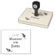 Carimbo de borracha de Casamento Romântico Personalize facilmente este cartaz de borracha de casamento fofo e personalizado com os seus nomes de casais, data do evento. Folhas flóricas simples decoração e fonte de serifa angustiada vintage. Adicione suas decorações, imagem ou texto. Perfeito para favores de casamentos, convites para endereços de retorno, artesanato, reservas, decorações ou artigos de papelaria. Disponível com cores diferentes de tinta (não incluídas) em tamanhos diferentes, com alça ou sem alça. Nenhuma quantidade mínima da ordem.