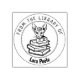 Este carimbo "Da Biblioteca de" contém um gato Petersburgo com livros e nome personalizado.