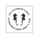 Um par de cavalos-marinhos virados um para o outro são rodeados pelo nome e endereço escritos em maiúsculas, formando um círculo - o nome está acima deles, o endereço abaixo.