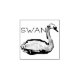 Uma imagem e um texto cisnes enfeitam este carimbo.