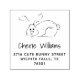 A arte da linha de cartoon de coelho doce decora este divertido endereço de retorno personalizado com selo de borracha. Mostre seu amor por coelhos e adicione alguma beleza à sua correspondência ao mesmo tempo. A linha de nome personalizado é impressa em script de estilo de escrita manual. O endereço consistia em três linhas de impressão de leitura fácil.