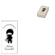 Ninja linda de desenho animado vestida de preto, mas para um pequeno arco em cima de sua máscara de cabeça. A espada tradicional japonesa de katana pode ser vista amarrada nas costas dela. A garota está segurando uma cesta de compro. O carimbo foi concebido para funcionar como uma chapa de matrícula.