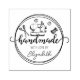 Este elegante selo de borracha "feito à mão com amor" apresenta objetos de costura com nome personalizado.