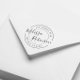 Crie seu próprio nome de script de endereço de devolução em círculo, por carimbos de borracha.
