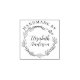 Simples carimbo para presentes feitos à mão em uma bela caligrafia com seu nome embrulhado em uma coroa de louros com botões e corações.