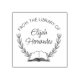Este carimbo "Da Biblioteca de" contém um livro, flores e um nome.
