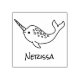 Um belo cartoon narwhal com um chifre e manchas. O carimbo pode ser personalizado com um nome personalizado.