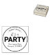 Crie o seu. É um selo de borracha de endereço de retorno do Partido. Este simples design circular apresenta um estilo moderno, estilo escrita à mão, com letra tipográfica. Perfeito para Festas de aniversário, chás de panela, chás de fraldas e festas de noivado de casamento.