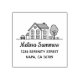 Uma simples arte de linha de uma casa de dois andares com um carro estacionado do lado esquerdo e uma árvore da direita. Personalize com seu próprio endereço.
