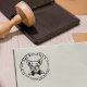 Este carimbo apresenta uma imagem personalizada de Chihuahua, com um nome e endereço da família.