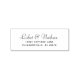 Simples e moderno endereço de retorno de casamento, com carimbo de borracha, com seus nomes em um roteiro preto formal e seu endereço na fonte sans serif.