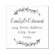 Carimbo personalizado de ida e volta do casamento, com casal/noiva e nome e morada do noivo, rodeado por uma elegante coroa botânica desenhada à mão. Perfeito para adicionar um toque de elegância a anúncios de casamento, cartas, convites, envelopes e muito mais!