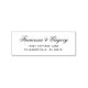 Clássico, elegante carimbo de devolução de endereço de casamento, com seus nomes em um roteiro preto formal e seu endereço na fonte sans serif.